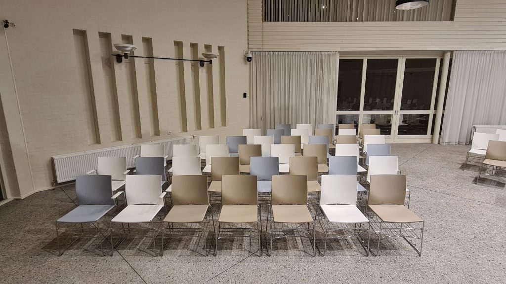 Na gebruik van de Kerkzaal dienen de stoelen teruggezet te worden volgens het onderstaande stoelenplan.