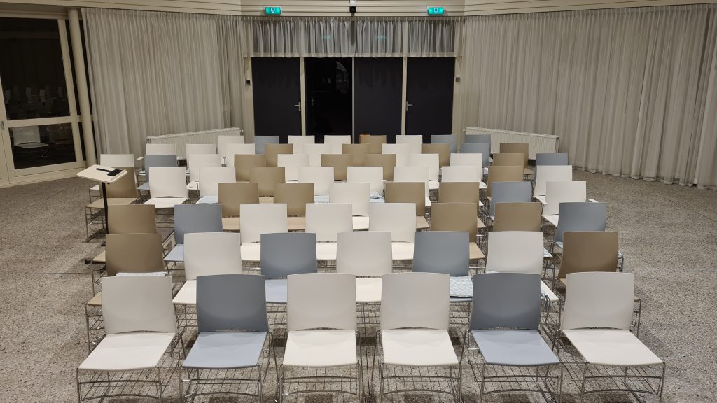 Indien de wens er is om de zaalindeling te wijzigen, dan dient dit samen en in overleg met het Zaalgebruik-team uitgevoerd te worden. Gelieve de zaalindeling niet zonder overleg en zonder hulp van ons te wijzigen.